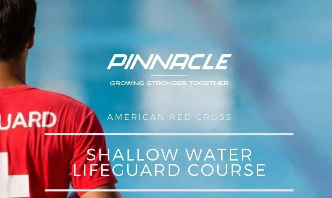 Complete your Shallow Water Lifeguard Certification right from home! Complete majority of your training at home & complete your evaluation at Pinnacle during private sessions with our certified trainer to guarantee your success!